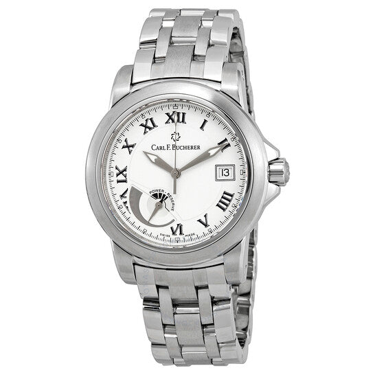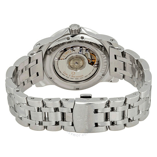 علبة من الفولاذ المقاوم للصدأ مع سوار من الفولاذ المقاوم للصدأ. إطار ثابت من الفولاذ المقاوم للصدأ. ميناء أبيض بعقارب فضية مضيئة وعلامات ساعات رومانية. علامات دقائق حول الحافة الخارجية. نوع الميناء: تناظري. عقارب مضيئة. عرض التاريخ عند موضع الساعة 3. مؤشر احتياطي الطاقة. حركة أوتوماتيكية من كارل إف. بوخرر، عيار CFB 1956، باحتياطي طاقة لمدة 42 ساعة. زجاج ياقوت مقاوم للخدش. غطاء خلفي شفاف. شكل دائري. حجم العلبة: 38 مم. عرض السوار: 20 مم. مشبك قابل للطي بزر ضغط. مقاومة للماء حتى عمق 50 مترًا / 165 قدمًا. الوظائف: التاريخ، الساعة، الدقائق، الثواني، مؤشر احتياطي الطاقة. سلسلة باترافي. تصميم ساعة فاخرة. علامة الساعة: صناعة سويسرية. تنوعات المنتج: 166.152.9. ساعة كارل اف بوخرير باترافي أوتوماتيكية باور ريزيرف للرجال 00.10616.08.21.21.