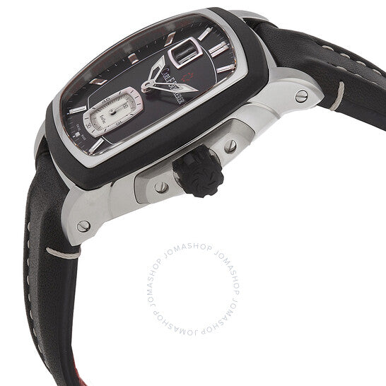علبة من الفولاذ المقاوم للصدأ مع سوار جلدي أسود. إطار ثابت من الفولاذ المقاوم للصدأ باللون الفضي والأسود. ميناء أسود بعقارب سوداء وبيضاء وعلامات ساعات. نوع الميناء: تناظري. ميناء فرعي واحد يعرض: ثواني صغيرة. حركة أوتوماتيكية من كارل إف. بوشرر كاليبر CFB A1003، تحتوي على 33 جوهرة، تنبض بمعدل 21600 ذبذبة في الساعة، ولديها احتياطي طاقة يدوم حوالي 55 ساعة. زجاج ياقوتي مقاوم للخدش. هيكل مربع الشكل، مقاسه: 38.5 × 39 مم، سمكه: 13 مم. مشبك بإبزيم. الوظائف: تاريخ كبير، ساعات، دقائق، ثواني صغيرة. سلسلة باترافي إيفوتك. تصميم ساعة فاخرة. علامة الساعة: صناعة سويسرية. ساعة كارل إف. بوشرر باترافي إيفوتك أوتوماتيكية للرجال بمينا أسود، 00.10628.13.33.01.