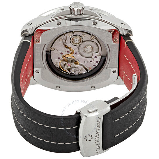 علبة من الفولاذ المقاوم للصدأ فضية اللون مع سوار جلدي أسود. إطار ثابت من الفولاذ المقاوم للصدأ فضي اللون. ميناء أسود مع عقارب فضية اللون على شكل سيف وعلامات ساعات مؤشرة. علامات دقائق حول الحافة الخارجية. نوع الميناء: تناظري. عقارب وعلامات مضيئة. عرض التاريخ بين موضعي الساعة ١٠ و١١. ميناء فرعي واحد يعرض: ثواني صغيرة. حركة أوتوماتيكية من كارل إف. بوخرير كاليبر CFB A1001، تحتوي على ٣١ جوهرة، تنبض بمعدل ٢١٦٠٠ ذبذبة في الساعة، ولديها احتياطي طاقة يقارب ٥٥ ساعة. زجاج من الياقوت المقاوم للخدش. تاج لولبي. غطاء خلفي شفاف. شكل العلبة وسادة، مقاس العلبة: ٤٤.٥ مم × ٤٣.٧٥ مم، سمك العلبة: ١٣.٩٥ مم. مقاومة للماء حتى عمق ٥٠ مترًا / ١٦٥ قدمًا. الوظائف: تاريخ كبير، يوم، ساعة، دقيقة، ثواني صغيرة. سلسلة باترافي إيفوتيك. تصميم ساعة فاخرة. ملصق الساعة: صناعة سويسرية. اختلافات المنتج: ١٦٦.٤٤٥.٩. ساعة كارل إف. بوخرير باترافي إيفو تيك أوتوماتيكية للرجال ٠٠.١٠٦٢٥.٠٨.٣٣.٠١.