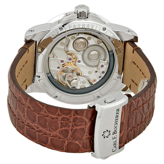 علبة من الفولاذ المقاوم للصدأ مع سوار جلدي بني. إطار ثابت. ميناء فضي اللون بعقارب فضية اللون وعلامات ساعات. نوع الميناء: تناظري. عرض التاريخ بين الساعة ١٠ و١١. ثواني واحدة إلى ٦٠ ثانية. حركة أوتوماتيكية. زجاج ياقوت مقاوم للخدش. حجم العلبة: ٣٨.٥ مم. شكل العلبة دائري. مقاومة للماء حتى عمق ٥٠ مترًا / ١٦٥ قدمًا. الوظائف: التاريخ، اليوم، الساعة، الدقيقة، الثانية. تصميم ساعة فاخر. علامة الساعة: صناعة سويسرية. رقم المنتج: ١٦٦.٤٣٢.٤. ساعة كارل إف. بوخرير باترافي إيفوتك أوتوماتيكية للرجال ٠٠.١٠٦٣٠.٠٨.٢٣.٠١.