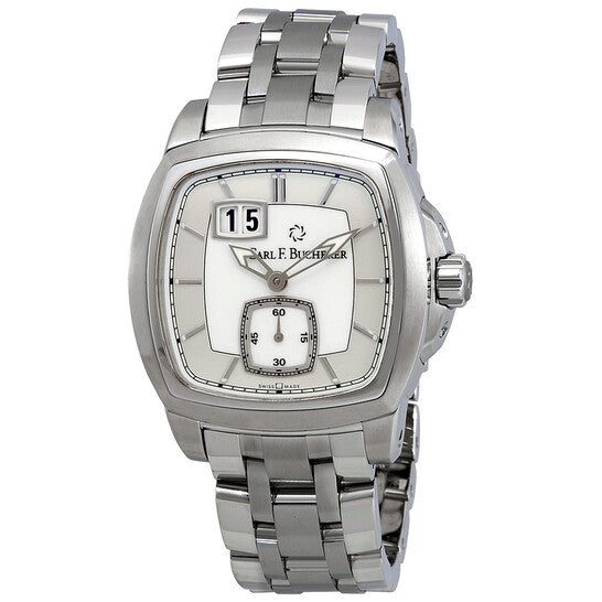 علبة من الفولاذ المقاوم للصدأ مع سوار من الفولاذ المقاوم للصدأ. إطار ثابت من الفولاذ المقاوم للصدأ. ميناء فضي مع عقارب ومؤشرات ساعات فضية مضيئة. مؤشرات دقائق حول الحافة الخارجية. نوع الميناء: تناظري. عقارب ومؤشرات مضيئة. عرض التاريخ عند موضع الساعة 11. ميناء فرعي للثواني الصغيرة. حركة أوتوماتيكية من عيار كارل إف. بوخرر CFB A1003 مع احتياطي طاقة يصل إلى 55 ساعة. زجاج من الياقوت المقاوم للخدش. تاج لولبي. غطاء خلفي شفاف. شكل وسادة. أبعاد العلبة: 38.54 مم × 39.25 مم. سُمك العلبة: 12.9 مم. مشبك قابل للطي بزر ضغط. مقاومة للماء حتى عمق 50 مترًا / 165 قدمًا. الوظائف: التاريخ، الساعة، الدقائق، الثواني. تصميم ساعة فاخرة. علامة الساعة: صناعة سويسرية. ساعة كارل إف بوشرر باترافي إيفوتيك أوتوماتيكية بمينا فضي للرجال 00.10628.08.23.21.