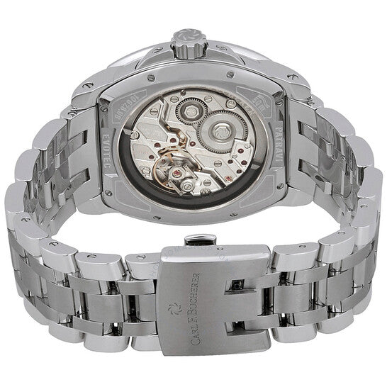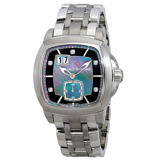 علبة من الفولاذ المقاوم للصدأ مع سوار من الفولاذ المقاوم للصدأ. إطار ثابت من الفولاذ المقاوم للصدأ. ميناء أسود من عرق اللؤلؤ مع عقارب فضية مضيئة وعلامات ساعات متناوبة من الألماس والمؤشر. علامات دقائق حول الحافة الخارجية. نوع الميناء: تناظري. عقارب مضيئة. نافذة عرض التاريخ عند موضع الساعة 11. ميناء فرعي للثواني الصغيرة. حركة أوتوماتيكية من عيار كارل إف. بوخرر CFB A1003 مع احتياطي طاقة يصل إلى 55 ساعة. زجاج من الياقوت المقاوم للخدش. تاج لولبي. غطاء خلفي شفاف. شكل وسادة. أبعاد العلبة: 38.54 × 39.25 مم. سمك العلبة: 12.9 مم. مشبك قابل للطي بزر ضغط. مقاومة للماء حتى عمق 50 مترًا / 165 قدمًا. الوظائف: التاريخ، الساعة، الدقائق، الثواني. تصميم ساعة فاخرة. علامة الساعة: صناعة سويسرية. ساعة كارل اف بوخرير باترافي ايفو تيك بيج ديت أوتوماتيكية مرصعة بالماس للرجال 00.10628.08.87.21.