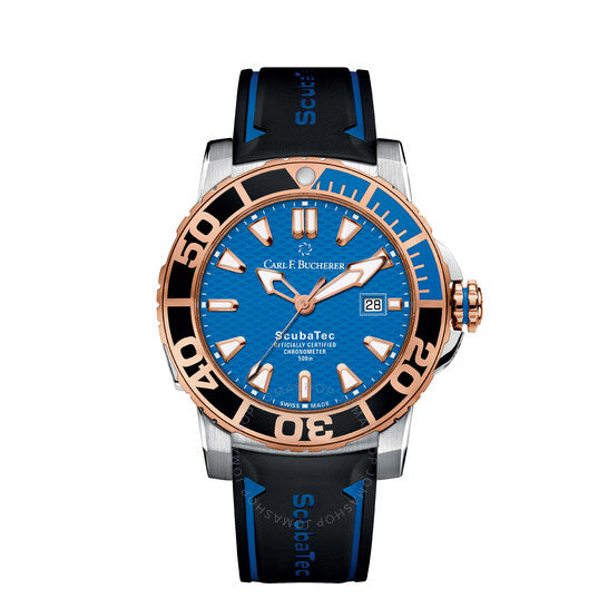 علبة من الفولاذ المقاوم للصدأ والذهب الوردي عيار 18 قيراطًا، مع سوار مطاطي أسود. إطار دوار أحادي الاتجاه من السيراميك الأسود والأزرق (باتمان). ميناء أزرق مع عقارب وعلامات ساعات ذهبية وردية اللون. علامات دقائق حول الحافة الخارجية. نوع الميناء: تناظري. عقارب وعلامات مضيئة. عرض التاريخ عند موضع الساعة 3. حركة أوتوماتيكية كارل إف. بوخرر كاليبر CFB 1950.1 مع احتياطي طاقة لمدة 38 ساعة. زجاج ياقوت مقاوم للخدش. تاج لولبي. شكل العلبة دائري، مقاسها: 44.6 مم، سُمكها: 13.45 مم. مقاومة للماء حتى عمق 500 متر / 1650 قدمًا. الوظائف: التاريخ، الساعة، الدقيقة، الثانية، الكرونومتر. تصميم ساعة فاخرة. علامة الساعة: صناعة سويسرية. تنوعات المنتج: 166.223.7. ساعة كارل اف بوخرير باترافي سكوباتيك أوتوماتيكية للرجال 00.10632.24.53.01.