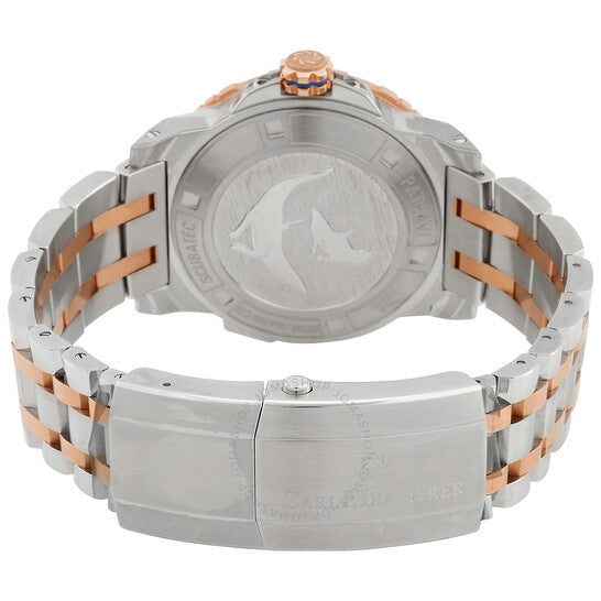علبة من الفولاذ المقاوم للصدأ مع سوار من الفولاذ المقاوم للصدأ بوصلات من الذهب الوردي عيار 18 قيراطًا. إطار دوار أحادي الاتجاه من الذهب الوردي عيار 18 قيراطًا مع حلقة سيراميك سوداء وزرقاء (باتمان). ميناء أزرق مع عقارب مضيئة بلون الذهب الوردي وعلامات ساعات مؤشرة. علامات دقائق حول الحافة الخارجية. نوع الميناء: تناظري. عقارب وعلامات مضيئة. عرض التاريخ عند موضع الساعة 3. حركة أوتوماتيكية من كارل إف. بوخرر، عيار CFB 1950.1، تحتوي على 26 جوهرة، ولديها احتياطي طاقة يبلغ حوالي 38 ساعة. زجاج من الياقوت المقاوم للخدش. تاج لولبي. غطاء خلفي شفاف. شكل دائري. حجم العلبة: 44.6 مم. سمك العلبة: 13.45 مم. عرض السوار: 22 مم. مشبك قابل للطي. مقاومة للماء حتى عمق 500 متر / 1650 قدمًا. الوظائف: التاريخ، الساعة، الدقائق، الثواني، الكرونومتر. سلسلة باترافي سكوباتيك. ساعة فاخرة. علامة الساعة: صناعة سويسرية. تنوعات المنتج: 166.266.8. ساعة كارل إف. بوخرير باترافي سكوباتيك أوتوماتيكية للرجال 00.10632.24.53.21.