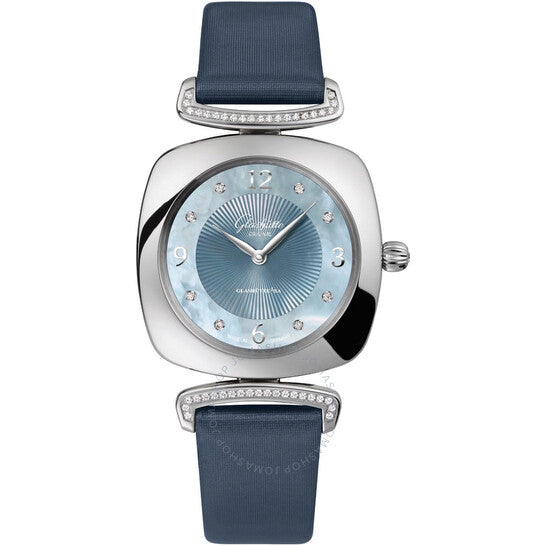 علبة من الفولاذ المقاوم للصدأ فضية اللون مع حزام ساتان أزرق. ميناء أزرق من عرق اللؤلؤ مع عقارب فضية اللون وأرقام عربية وعلامات ساعات مرصعة بالألماس. نوع الميناء: تناظري. حركة كوارتز عيار 03-02. زجاج ياقوت مقاوم للخدش. تاج قابل للسحب/الدفع. غطاء خلفي صلب. شكل العلبة وسادة، مقاس العلبة: 31 مم × 31 مم، سمكها: 7.5 مم. مشبك بإبزيم. مقاومة للماء حتى عمق 50 مترًا / 150 قدمًا. الوظائف: الساعات، الدقائق. سلسلة بافونينا. تصميم ساعة فاخرة. علامة الساعة: صنع في ألمانيا. ساعة بافونينا كوارتز نسائية أصلية من جلاشوت، مرصعة بالألماس، 03-02-06-12-34.
