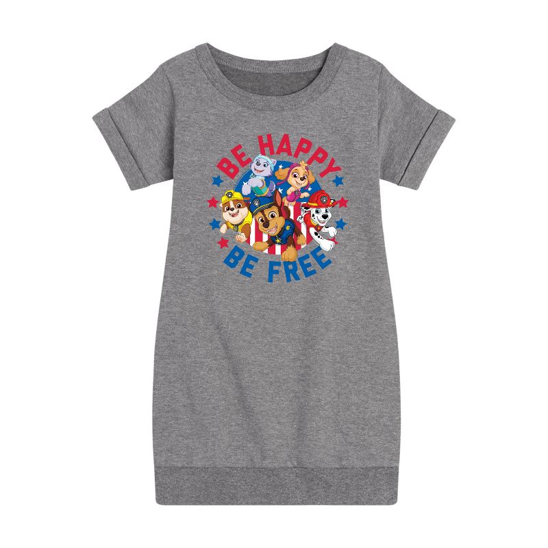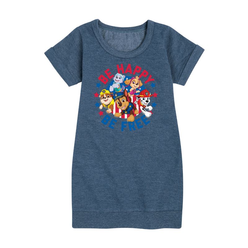 Paw Patrol - Americana - Be Happy, Be Free - فستان من الصوف للفتيات الصغيرات والشابات - انضم إلى Paw Patrol مع الملابس الرسومية التي تعرض الجراء المفضلة لديك - تشيس ومارشال وسكاي ورابل - المستعدة لإنقاذ خليج المغامرات بمغامراتهم البطولية!