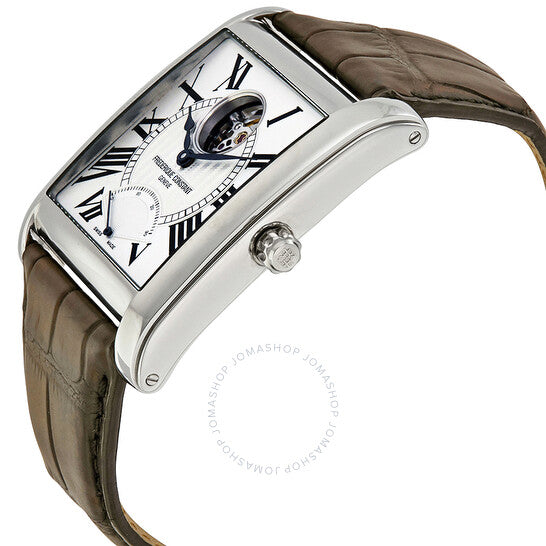 علبة من الفولاذ المقاوم للصدأ مع سوار جلدي بني. إطار ثابت من الفولاذ المقاوم للصدأ. ميناء فضي بعلامات ساعات رومانية. علامات دقائق حول حلقة داخلية. نوع الميناء: تناظري. حركة أوتوماتيكية من عيار فريدريك كونستانت FC-680 مع احتياطي طاقة يصل إلى حوالي 42 ساعة. زجاج ياقوت مقاوم للخدش. غطاء خلفي شفاف. مقاس العلبة: 46 مم × 38.5 مم. سُمك العلبة: 11 مم. شكل العلبة مستطيل. مقاومة للماء حتى عمق 30 مترًا / 100 قدم. الوظائف: ساعة، دقيقة. طراز ساعة رسمية. علامة الساعة: صناعة سويسرية. إصدارات الساعة: FC 680MS4C26، FC680MS4C26، FC680MS4C26. ساعة فريدريك كونستانت بيرسواجن كاريه الأوتوماتيكية للرجال FC-680MS4C26.