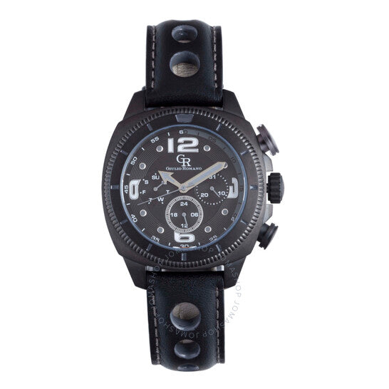 علبة من الفولاذ المقاوم للصدأ باللون الأسود مع سوار جلدي أسود. إطار أسود ثابت. ميناء أسود بأرقام عربية وعلامات ساعات. علامات دقائق حول الحافة الخارجية. نوع الميناء: تناظري. علامات مضيئة. عرض التاريخ عند موضع الساعة الثالثة. ثلاثة موانئ فرعية للتاريخ وأيام الأسبوع. حركة كوارتز ISA Caliber 9238. زجاج معدني مقاوم للخدش. تاج قابل للسحب/الدفع. غطاء خلفي صلب. شكل دائري، مقاس العلبة: 42 مم، سمكها: 12.5 مم. عرض السوار: 20 مم، طوله: 8 بوصات. مشبك قابل للطي بزر ضغط. مقاومة للماء حتى عمق 50 مترًا / 165 قدمًا. الوظائف: التاريخ، اليوم، توقيت غرينتش، المنطقة الزمنية الثانية، الساعة، الدقيقة، الثانية. تصميم عصري. ساعة جوليو رومانو بيسكارا كوارتز للرجال بمينا سوداء GR-2000-13-011.