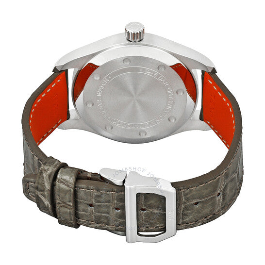 علبة فضية اللون من الفولاذ المقاوم للصدأ مع حزام رمادي من جلد التمساح. إطار ثابت من الفولاذ المقاوم للصدأ فضي اللون. ميناء فضي بعقارب سوداء مضيئة وعلامات ساعات عربية. علامات دقائق حول الحافة الخارجية. نوع الميناء: تناظري. عقارب وعلامات مضيئة. عرض التاريخ عند موضع الساعة 3. حركة أوتوماتيكية من طراز IWC Calibre 35111، مبنية على Sellita SW300-1، تحتوي على 25 جوهرة، مكونة من 163 جزءًا، تنبض بمعدل 28800 ذبذبة في الساعة، ولديها احتياطي طاقة لمدة 42 ساعة تقريبًا. زجاج من الياقوت المقاوم للخدش. تاج لولبي. غطاء خلفي صلب. شكل دائري، مقاس العلبة: 36 مم، سمكها: 10.5 مم. مشبك تانغ. مقاومة للماء حتى عمق 60 مترًا / 200 قدم. الوظائف: التاريخ، الساعة، الدقائق، الثواني. سلسلة بايلوت. طراز ساعة بايلوت. ملصق الساعة: صناعة سويسرية. ساعة IWC Pilot أوتوماتيكية للرجال بمينا فضي IW324007.