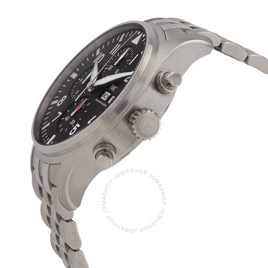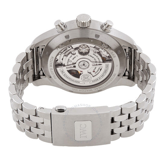 علبة وسوار من الفولاذ المقاوم للصدأ فضي اللون. إطار ثابت من الفولاذ المقاوم للصدأ فضي اللون. ميناء أسود بعقارب فضية اللون وعلامات ساعات بأرقام عربية. علامات دقائق حول الحافة الخارجية. نوع الميناء: تناظري. عقارب وعلامات مضيئة. عرض يوم الأسبوع والتاريخ عند موضع الساعة 3. كرونوغراف - ثلاثة أقراص فرعية تعرض: 60 ثانية، 30 دقيقة، و12 ساعة. حركة أوتوماتيكية من طراز IWC Calibre 69385، تحتوي على 33 جوهرة، مكونة من 231 جزءًا، تنبض بمعدل 28800 ذبذبة في الساعة، ولديها احتياطي طاقة لمدة 46 ساعة تقريبًا. كريستال ياقوت مقاوم للخدش. تاج لولبي. غطاء خلفي شفاف. شكل دائري، حجم العلبة: 43 مم. مشبك قابل للطي مع مفتاح أمان. مقاومة للماء حتى عمق 100 متر / 330 قدمًا. الوظائف: كرونوغراف، عجلة عمودية، التاريخ، اليوم، الساعة، الدقائق، الثواني الصغيرة. معلومات إضافية: العلبة الأصلية، بطاقة الضمان الدولية، دليل الاستخدام (ملحقات كاملة). سلسلة بايلوت. تصميم فاخر. علامة الساعة: صناعة سويسرية. ساعة آي دبليو سي بايلوت كرونوغراف أوتوماتيكية بمينا سوداء للرجال IW378002.