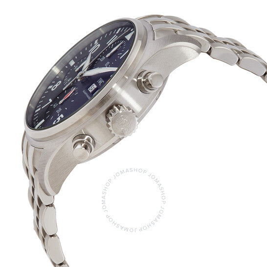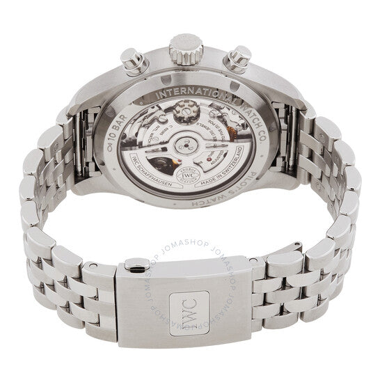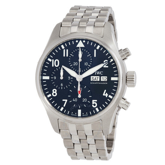 علبة وسوار من الفولاذ المقاوم للصدأ فضي اللون. إطار ثابت من الفولاذ المقاوم للصدأ فضي اللون. ميناء أسود بعقارب فضية اللون وعلامات ساعات بأرقام عربية. علامات دقائق حول الحافة الخارجية. نوع الميناء: تناظري. عقارب وعلامات مضيئة. عرض يوم الأسبوع والتاريخ عند موضع الساعة 3. كرونوغراف - ثلاثة أقراص فرعية تعرض: 60 ثانية، 30 دقيقة، و12 ساعة. حركة أوتوماتيكية من طراز IWC Calibre 69385، تحتوي على 33 جوهرة، مكونة من 231 جزءًا، تنبض بسرعة 28800 ذبذبة في الساعة، ولديها احتياطي طاقة لمدة 46 ساعة تقريبًا. زجاج من الياقوت المقاوم للخدش. تاج لولبي. غطاء خلفي شفاف. شكل دائري، حجم العلبة: 41 مم. مشبك قابل للطي مع مفتاح أمان. مقاومة للماء حتى عمق 100 متر / 330 قدمًا. الوظائف: كرونوغراف، عجلة عمودية، تاريخ، يوم، ساعة، دقيقة، ثواني صغيرة. معلومات إضافية: العلبة الأصلية، بطاقة الضمان الدولية، دليل الاستخدام (ملحقات كاملة). سلسلة بايلوت. تصميم فاخر. ملصق الساعة: صناعة سويسرية. ساعة آي دبليو سي بايلوت كرونوغراف أوتوماتيكية.