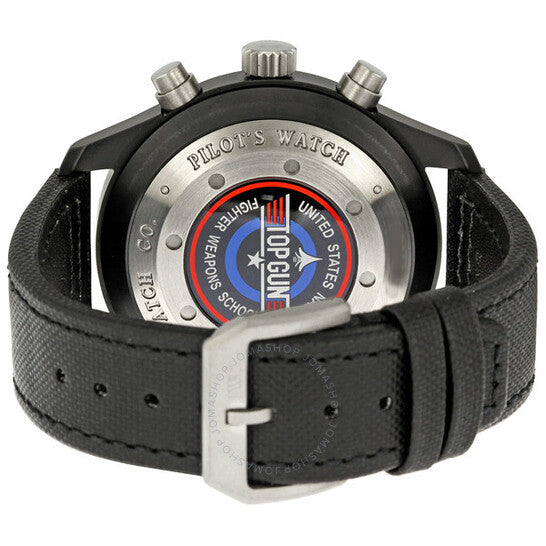 علبة سيراميك سوداء مع سوار نايلون أسود. إطار ثابت. ميناء أسود بعقارب زرقاء مضيئة وعلامات ساعات رقمية عربية. علامات دقائق على الحافة الخارجية. عقارب وعلامات مضيئة. يعرض اليوم والتاريخ عند موضع الساعة الثالثة. كرونوغراف - ثلاثة أقراص فرعية تعرض: 60 ثانية، 30 دقيقة، و12 ساعة. كرونوغراف بأجزاء الثانية. حركة أوتوماتيكية. كريستال ياقوت مقاوم للخدش. تاج لولبي. غطاء خلفي لولبي منقوش عليه شعار مدرسة أسلحة المقاتلات التابعة للبحرية الأمريكية، ونقش عليه "ساعة الطيار" و"شركة الساعات الدولية". قطر العلبة: 46 مم. سمكها: 17.8 مم. مشبك تانغ. مقاومة للماء حتى عمق 60 مترًا / 200 قدم. ساعة آي دبليو سي بايلوت كرونوغراف مزدوجة أوتوماتيكية للرجال IW379901.