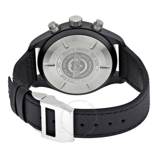 علبة سيراميك سوداء مع حزام من جلد العجل الأسود. إطار ثابت من السيراميك الأسود. ميناء أسود بعقارب سوداء مضيئة وعلامات ساعات رقمية عربية. علامات دقائق حول الحافة الخارجية. نوع الميناء: تناظري. عقارب وعلامات مضيئة. عرض التاريخ عند موضع الساعة 3. كرونوغراف - ميناءان فرعيان يعرضان: 60 ثانية، و12 ساعة مع 60 دقيقة مدمجة. حركة أوتوماتيكية من طراز IWC Calibre 89361، مستوحاة من IWC 89360، تحتوي على 38 جوهرة، ولديها احتياطي طاقة يبلغ حوالي 68 ساعة. زجاج من الياقوت المقاوم للخدش. تاج لولبي. غطاء خلفي صلب. شكل دائري، حجم العلبة: 44 مم، سمك العلبة: 15.5 مم. عرض السوار: 20 مم. مشبك قابل للطي بزر ضغط. مقاومة للماء حتى عمق 60 مترًا / 200 قدم. الوظائف: كرونوغراف، فلاي باك، تاريخ، ساعة، دقيقة، ثانية صغيرة. سلسلة بايلوت توب غان. طراز ساعة الطيار. علامة الساعة: صناعة سويسرية. ساعة آي دبليو سي بايلوت توب غان أوتوماتيكية كرونوغراف للرجال IW389001.