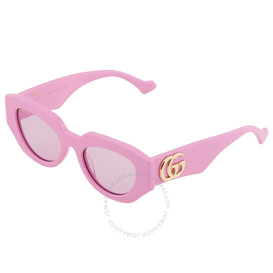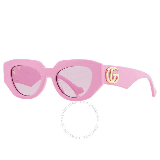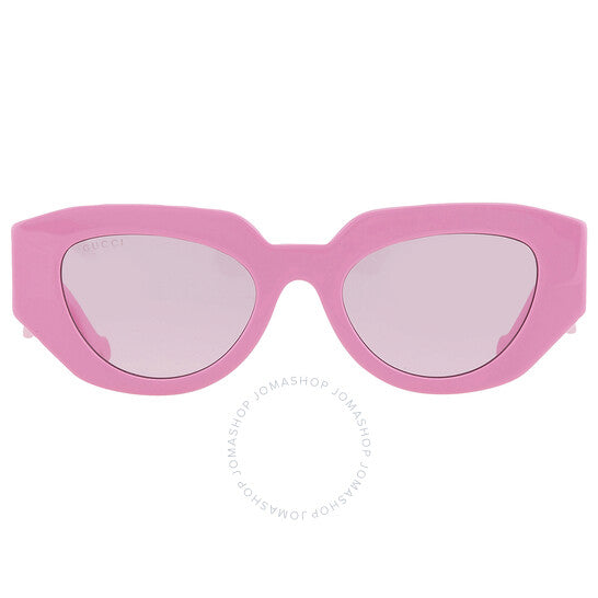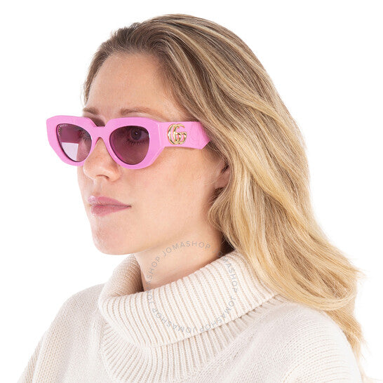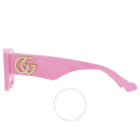نظارات شمسية من غوتشي. رقم السلسلة: GG1421S. رمز اللون: 004. الشكل: هندسي. عرض العدسة: 51 مم. جسر العدسة: 20 مم. طول الذراع: 145 مم. حماية 100% من الأشعة فوق البنفسجية. غير مستقطبة. مادة الإطار: أسيتات معاد تدويره. لون الإطار: وردي. نوع العدسات: وردي. نمط الحافة: حافة كاملة. رمز UPC/EAN: 889652439105. نظارات شمسية غوتشي نسائية وردية هندسية GG1421S 004 51.