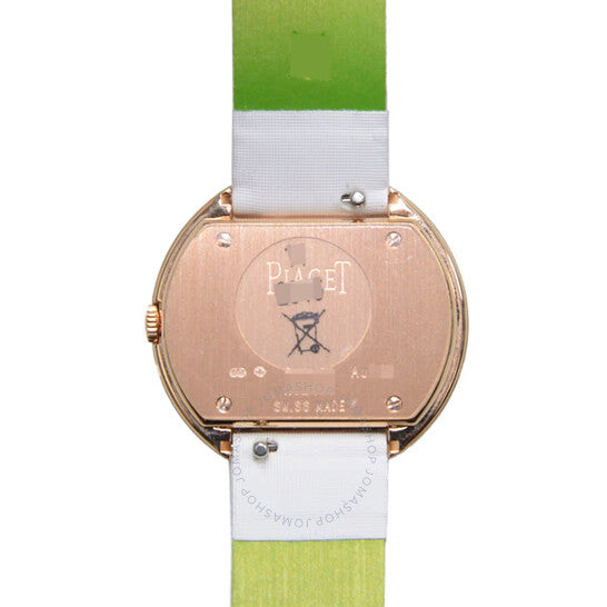 علبة من الذهب الوردي عيار ١٨ قيراطًا مع سوار من الساتان الأبيض. إطار دوار. ميناء فضي اللون مع عقارب بلون الذهب الوردي وعلامات ساعات بأرقام رومانية. نوع الميناء: تناظري. حركة كوارتز. غطاء خلفي صلب. قطر العلبة: ٢٩ مم. سُمكها: ٦.٢ مم. شكلها دائري. مشبك تانغ. مقاومة للماء حتى عمق ٣٠ مترًا / ١٠٠ قدم. وظائفها: الساعات، الدقائق. طراز ساعة فاخرة. علامة الساعة: صناعة سويسرية. إصدارات المنتج: GOA35084، G0A35084، 35084. ساعة بياجيه بوسيشن نسائية بمينا فضي G0A35084.
