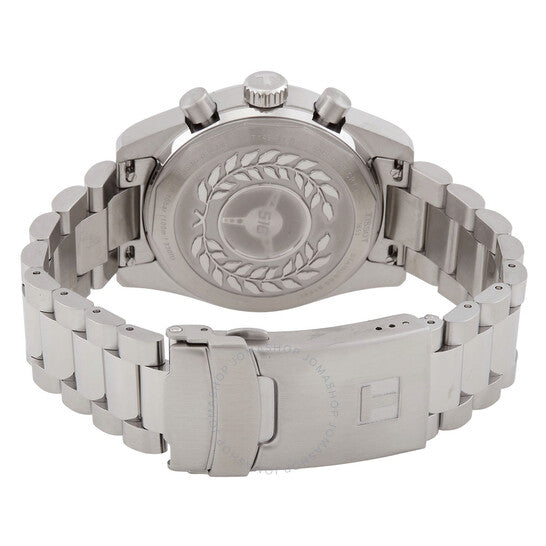 علبة وسوار من الفولاذ المقاوم للصدأ فضي اللون. إطار ثابت من الفولاذ المقاوم للصدأ ثنائي اللون (أزرق وأبيض). ميناء أزرق مع عقارب رمادية وعلامات ساعات. علامات دقائق حول الحافة الخارجية. نوع الميناء: تناظري. عقارب وعلامات مضيئة. كرونوغراف - ثلاثة أقراص فرعية تعرض: ٦٠ ثانية، ٣٠ دقيقة، و١/١٠ من الثانية. حركة كوارتز. زجاج ياقوت مقاوم للخدش. تاج لولبي. غطاء خلفي صلب. شكل دائري، مقاس العلبة: ٤٠ مم، سمكها: ١٢.٢ مم. عرض السوار: ٢٠ مم. مشبك قابل للطي مع مفتاح أمان. مقاومة للماء حتى عمق ١٠٠ متر / ٣٣٠ قدمًا. الوظائف: كرونوغراف، ساعة، دقيقة، ثانية. سلسلة Pr516. طراز ساعة رياضية. علامة الساعة: صناعة سويسرية. ساعة تيسوت PR516 كرونوغراف كوارتز زرقاء للرجال، T149.417.11.041.00.