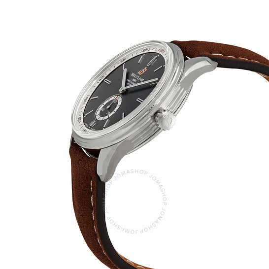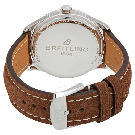 علبة من الفولاذ المقاوم للصدأ مع سوار من الجلد البني (نوبوك). إطار ثابت من الفولاذ المقاوم للصدأ. ميناء رمادي مع عقارب ومؤشرات ساعات فضية مضيئة. مؤشرات دقائق حول الحافة الخارجية. نوع الميناء: تناظري. عقارب ومؤشرات مضيئة. ميناء فرعي للثواني الصغيرة فوق موضع الساعة السادسة. حركة بريتلينغ أوتوماتيكية كاليبر 37 مع احتياطي طاقة لمدة 42 ساعة. زجاج من الياقوت المقاوم للخدش. تاج قابل للسحب/الدفع. غطاء خلفي صلب. شكل دائري. حجم العلبة: 40 مم. سمكها: 11.40 مم. عرض السوار: 20 مم. مشبك تانغ. مقاومة للماء حتى عمق 100 متر / 330 قدمًا. الوظائف: الساعات، الدقائق، الثواني الصغيرة. تصميم ساعة فاخرة. علامة الساعة: صناعة سويسرية. ساعة بريتلينغ بريميير أوتوماتيكية للرجال بمينا رمادي A37340351B1X2.