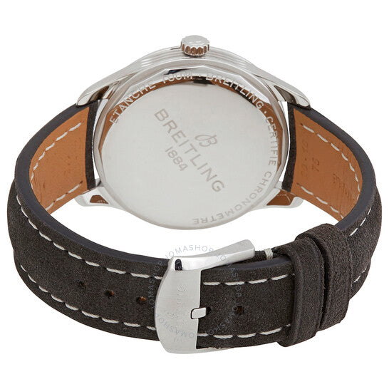 علبة من الفولاذ المقاوم للصدأ مع سوار من جلد أنثراسيت (نوبوك). إطار ثابت من الفولاذ المقاوم للصدأ. ميناء فضي مع عقارب وعلامات ساعات فضية مضيئة. علامات دقائق حول الحافة الخارجية. نوع الميناء: تناظري. عقارب وعلامات مضيئة. ميناء فرعي للثواني الصغيرة فوق موضع الساعة السادسة. حركة بريتلينغ أوتوماتيكية من عيار 37 مع احتياطي طاقة لمدة 42 ساعة. زجاج من الياقوت المقاوم للخدش. تاج قابل للسحب/الدفع. غطاء خلفي صلب. شكل دائري. حجم العلبة: 40 مم. سمكها: 11.40 مم. عرض السوار: 20 مم. مشبك تانغ. مقاومة للماء حتى عمق 100 متر / 330 قدمًا. الوظائف: الساعات، الدقائق، الثواني الصغيرة. تصميم ساعة فاخرة. علامة الساعة: صناعة سويسرية. ساعة بريتلينغ بريميير أوتوماتيكية للرجال بمينا فضي A37340351G1X2.