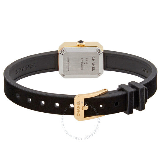 علبة من الذهب الأصفر عيار ١٨ قيراطًا مع سوار مطاطي أسود. إطار ثابت من الذهب الأصفر عيار ١٨ قيراطًا. ميناء أسود بعقارب ذهبية اللون. بدون علامات. نوع الميناء: تناظري. حركة كوارتز. زجاج من الياقوت المقاوم للخدش. تاج قابل للسحب/الدفع. غطاء خلفي صلب. شكل مضلع. أبعاد العلبة: ١٩.٥ مم × ١٥ مم. سُمك العلبة: ١٢ مم. مشبك تانغ. مقاومة للماء حتى عمق ٣٠ مترًا / ١٠٠ قدم. الوظائف: الساعات، الدقائق. سلسلة بريميير. تصميم ساعة فاخرة. علامة الساعة: صناعة سويسرية. ساعة شانيل بريميير كوارتز نسائية بمينا سوداء h6125.