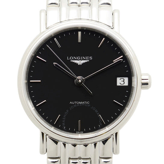 علبة وسوار من الفولاذ المقاوم للصدأ فضي اللون. إطار ثابت من الفولاذ المقاوم للصدأ فضي اللون. ميناء أسود بعقارب فضية اللون وعلامات ساعات. علامات دقائق حول الحافة الخارجية. نوع الميناء: تناظري. عرض التاريخ عند موضع الساعة 3. حركة لونجين كاليبر L619 أوتوماتيكية، مبنية على ETA 2892-A2، تحتوي على 21 جوهرة، تنبض بمعدل 28800 ذبذبة في الساعة، ولديها احتياطي طاقة لمدة 42 ساعة تقريبًا. زجاج ياقوتي مقاوم للخدش. غطاء خلفي شفاف. شكل العلبة دائري، مقاسها: 30 مم. عرض السوار: 16 مم. مشبك قابل للطي بزر ضغط. مقاومة للماء حتى عمق 30 مترًا / 100 قدم. الوظائف: التاريخ، الساعة، الدقيقة، الثانية. معلومات إضافية: العلبة الأصلية، بطاقة الضمان الدولية، دليل الاستخدام (ملحقات كاملة). سلسلة بريزنت. تصميم ساعة فاخرة. ملصق الساعة: صناعة سويسرية. ساعة لونجين بريسنس للسيدات بمينا أسود L4.322.4.52.6.
