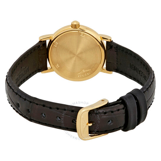 علبة من الذهب الأصفر عيار ١٨ قيراطًا مع سوار جلدي أسود. إطار ثابت. ميناء بلون الشمبانيا مع عقارب ذهبية اللون ومؤشرات ساعات. نوع الميناء: تناظري. عرض التاريخ عند موضع الساعة ٣. حركة كوارتز من لونجين كاليبر L152. كريستال ياقوت مقاوم للخدش. تاج قابل للسحب/الدفع. حجم العلبة: ٢٣.٥ مم. شكلها دائري. مقاومة للماء حتى عمق ٣٠ مترًا / ١٠٠ قدم. الوظائف: التاريخ، الساعة، الدقائق، الثواني. تصميم ساعة فاخرة. علامة الساعة: صناعة سويسرية. ساعة لونجين بريسنس النسائية بمينا بلون الشمبانيا L7.490.6.32.0.