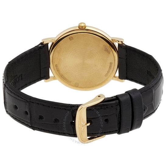 علبة من الذهب الأصفر عيار ١٨ قيراطًا مع سوار جلدي أسود. إطار ثابت من الذهب الأصفر عيار ١٨ قيراطًا. ميناء أبيض بعقارب ومؤشرات ساعات ذهبية اللون. مؤشرات دقائق حول الحافة الخارجية. نوع الميناء: تناظري. عرض التاريخ عند موضع الساعة ٣. حركة كوارتز من لونجين عيار L156. زجاج ياقوت مقاوم للخدش. تاج قابل للسحب/الدفع. غطاء خلفي صلب. شكل دائري. حجم العلبة: ٣٤ مم. عرض السوار: ١٧ مم. مشبك تانغ. مقاومة للماء حتى عمق ٣٠ مترًا / ١٠٠ قدم. الوظائف: التاريخ، الساعة، الدقيقة، الثانية. سلسلة بريسنس. طراز ساعة رسمية. علامة الساعة: صناعة سويسرية. ساعة لونجين بريسنس كوارتز نسائية بمينا بيضاء L4.743.6.12.0.
