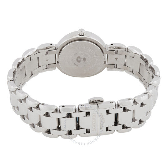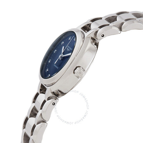علبة وسوار من الفولاذ المقاوم للصدأ فضي اللون. إطار ثابت من الفولاذ المقاوم للصدأ فضي اللون. ميناء أزرق من عرق اللؤلؤ مع عقارب فضية اللون وعلامات ساعات من الألماس. علامات دقائق حول الحافة الخارجية. نوع الميناء: تناظري. عرض التاريخ عند موضع الساعة 3. حركة لونجين كاليبر L592 أوتوماتيكية، مبنية على ETA A20.L01، تحتوي على 22 جوهرة، تنبض بمعدل 28800 ذبذبة في الساعة، ولديها احتياطي طاقة لمدة 40 ساعة تقريبًا. زجاج ياقوتي مقاوم للخدش. غطاء خلفي صلب. شكل العلبة دائري، مقاسها: 26 مم، سمكها: 8.8 مم. مشبك قابل للطي بزر ضغط. مقاومة للماء حتى عمق 30 مترًا / 100 قدم. الوظائف: التاريخ، الساعة، الدقائق، الثواني. معلومات إضافية: العلبة الأصلية، بطاقة الضمان الدولية، دليل الاستخدام (ملحقات كاملة). سلسلة بريما لونا. تصميم ساعة فاخرة. ملصق الساعة: صناعة سويسرية. ساعة لونجين بريما لونا أوتوماتيكية مرصعة بالماس للسيدات L8.111.4.98.6.