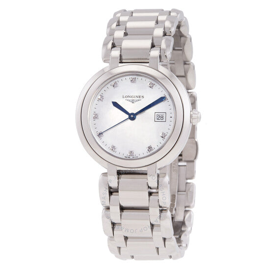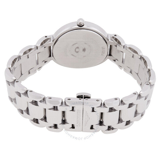 علبة وسوار من الفولاذ المقاوم للصدأ فضي اللون. إطار ثابت من الفولاذ المقاوم للصدأ فضي اللون. ميناء أبيض بعقارب زرقاء وعلامات ساعات من الألماس. علامات دقائق حول الحافة الخارجية. نوع الميناء: تناظري. عرض التاريخ عند موضع الساعة 3. حركة كوارتز لونجين كاليبر L152. زجاج ياقوتي مقاوم للخدش. غطاء خلفي صلب. شكل العلبة دائري، مقاسها: 30 مم. مشبك قابل للطي مع مفتاح أمان. مقاومة للماء حتى عمق 30 مترًا / 100 قدم. الوظائف: التاريخ، الساعة، الدقائق، الثواني. معلومات إضافية: العلبة الأصلية، بطاقة الضمان الدولية، دليل الاستخدام (ملحقات كاملة). سلسلة بريمالونا. تصميم ساعة فاخرة. علامة الساعة: صناعة سويسرية. ساعة لونجين بريمالونا كوارتز نسائية بمينا بيضاء مرصعة بالألماس L8.122.4.87.6.