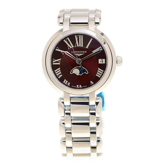 علبة وسوار من الفولاذ المقاوم للصدأ فضي اللون. إطار ثابت من الفولاذ المقاوم للصدأ فضي اللون. ميناء أحمر بعقارب فضية اللون وعلامات ساعات رومانية. نوع الميناء: تناظري. عرض التاريخ عند موضع الساعة 3. حركة كوارتز. زجاج ياقوت مقاوم للخدش. غطاء خلفي صلب. شكل العلبة دائري، مقاسها: 30 مم. إبزيم قابل للطي بزر ضغط. مقاومة للماء حتى عمق 30 مترًا / 100 قدم. الوظائف: التاريخ، الساعة، الدقائق، الثانية، طور القمر. معلومات إضافية: العلبة الأصلية، بطاقة الضمان الدولية، دليل الاستخدام (ملحقات كاملة). سلسلة بريمالونا. تصميم ساعة فاخرة. ملصق الساعة: صناعة سويسرية. ساعة لونجين بريمالونا كوارتز نسائية بمينا أحمر، L8.115.4.92.6.