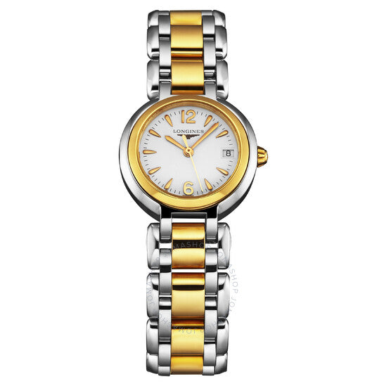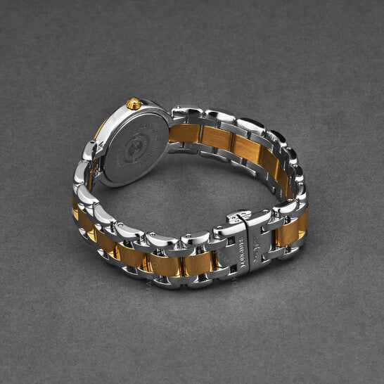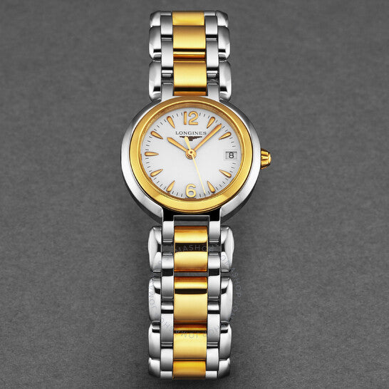 علبة فضية اللون من الفولاذ المقاوم للصدأ مع سوار من الفولاذ المقاوم للصدأ ثنائي اللون (فضي وذهبي وردي). إطار ثابت من الفولاذ المقاوم للصدأ بلون ذهبي وردي. ميناء أبيض بعقارب ذهبية وردية وعلامات ساعات بأرقام عربية. علامات دقائق حول الحافة الخارجية. نوع الميناء: تناظري. عرض التاريخ عند موضع الساعة 3. حركة كوارتز لونجين كاليبر L250. زجاج ياقوتي مقاوم للخدش. علبة دائرية الشكل، مقاسها: 26.5 مم، سُمكها: 8 مم. مشبك قابل للطي مع مفتاح أمان. مقاومة للماء حتى عمق 30 مترًا / 100 قدم. الوظائف: التاريخ، الساعة، الدقائق، الثواني، مؤشر عمر البطارية. معلومات إضافية: العلبة الأصلية، بطاقة الضمان الدولية، دليل الاستخدام (ملحقات كاملة). سلسلة بريمالونا. تصميم ساعة فاخرة. ملصق الساعة: صناعة سويسرية. إصدارات المنتج: L8.110.5.16.6. ساعة لونجين بريمالونا كوارتز نسائية بمينا بيضاء L8.110.5.16.6.