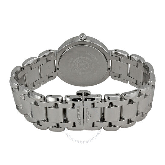 علبة من الفولاذ المقاوم للصدأ مع سوار من الفولاذ المقاوم للصدأ. إطار ثابت من الفولاذ المقاوم للصدأ. ميناء فضي بعقارب زرقاء على شكل سيف وعلامات ساعات رومانية. علامات دقائق حول الحافة الخارجية. نوع الميناء: تناظري. عرض التاريخ عند موضع الساعة الثالثة. حركة لونجين أوتوماتيكية من عيار L595/592، مبنية على ETA 2000-1، تحتوي على 20 جوهرة، تنبض بتردد 28800 ذبذبة في الساعة، ولديها احتياطي طاقة لمدة 40 ساعة تقريبًا. زجاج ياقوتي مقاوم للخدش. تاج قابل للسحب/الدفع. غطاء خلفي صلب. شكل دائري. حجم العلبة: 30 مم. سمكها: 7.8 مم. عرض السوار: 18 مم. مشبك قابل للطي بزر ضغط. مقاومة للماء حتى عمق 30 مترًا / 100 قدم. الوظائف: التاريخ، الساعة، الدقيقة، الثانية. سلسلة Primaluna. طراز ساعة رسمية. علامة الساعة: صناعة سويسرية. رقم الصنف: L81134716. ساعة لونجين بريما لونا للسيدات بمينا فضي L8.113.4.71.6.