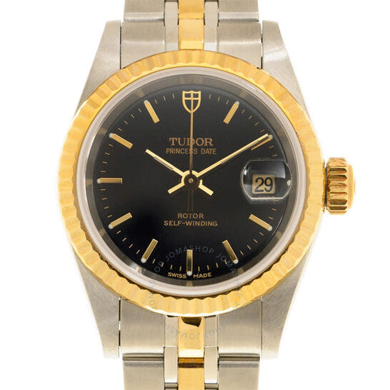 علبة من الفولاذ المقاوم للصدأ مع سوار من الفولاذ المقاوم للصدأ بحلقات من الذهب الأصفر عيار 18 قيراطًا. إطار ثابت من الذهب الأصفر عيار 18 قيراطًا. ميناء أسود بعقارب وعلامات ساعات مضيئة بلون الذهب الأصفر. علامات دقائق حول الحافة الخارجية. نوع الميناء: تناظري. عقارب وعلامات مضيئة. عرض التاريخ عند موضع الساعة 3. حركة أوتوماتيكية. كريستال ياقوت مقاوم للخدش. تاج لولبي. غطاء خلفي صلب. شكل دائري. حجم العلبة: 25 مم. مشبك قابل للطي. مقاومة للماء حتى عمق 100 متر / 330 قدمًا. الوظائف: التاريخ، الساعة، الدقائق، الثواني. معلومات إضافية: العلبة الأصلية، دليل الاستخدام (ملحقات كاملة). سلسلة "برينسس ديت". طراز ساعة فاخرة. علامة الساعة: صناعة سويسرية. ساعة تيودور "برينسس ديت" أوتوماتيكية نسائية بمينا أسود 92413-62433-BK.