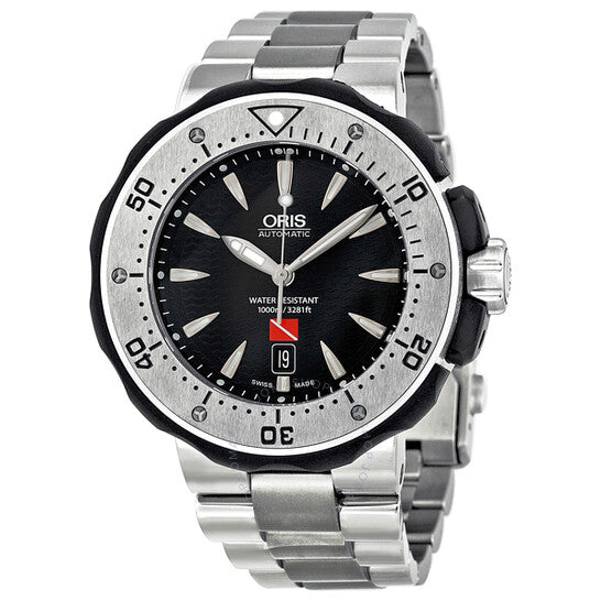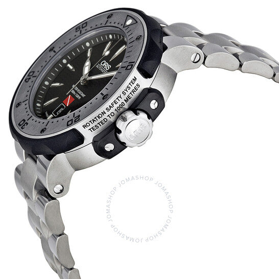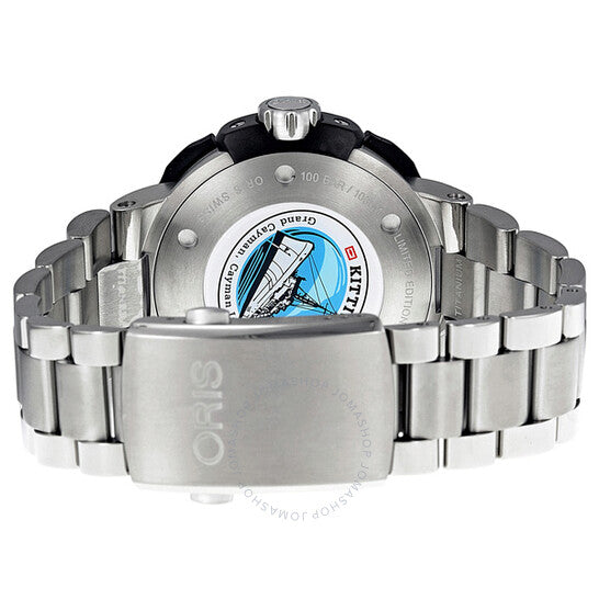 علبة من التيتانيوم مع سوار من التيتانيوم. إطار دوار أحادي الاتجاه من التيتانيوم. ميناء أسود بنقشة متموجة مطبوعة، مع عقارب وعلامات ساعات فضية اللون. علامات دقائق حول الحافة الخارجية. نوع الميناء: تناظري. عقارب وعلامات مضيئة. عرض التاريخ عند موضع الساعة السادسة. حركة أوتوماتيكية. زجاج ياقوت مقاوم للخدش. تاج لولبي. غطاء خلفي صلب. قطر العلبة: 49 مم. شكلها دائري. عرض السوار: 26 مم. مشبك قابل للطي مع مفتاح أمان. مقاومة للماء حتى عمق 1000 متر / 3000 قدم. الوظائف: التاريخ، الساعة، الدقيقة، الثانية. معلومات إضافية: علبة عرض مقاومة للماء، حزام مطاطي إضافي، وأدوات احترافية لتغيير الحزام. طراز الساعة الرياضية. علامة الساعة: صناعة سويسرية. ساعة أوريس برودايفر كيتيويك إصدار محدود 733-7646-7184MB.