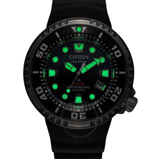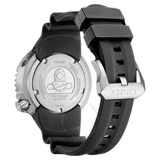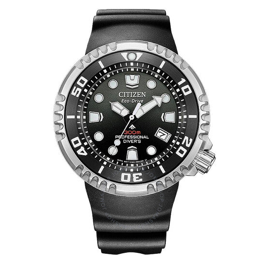 علبة فضية اللون من الفولاذ المقاوم للصدأ مع سوار مطاطي أسود. إطار أسود من الفولاذ المقاوم للصدأ. ميناء أسود بعقارب فضية اللون وعلامات ساعات منقطة. علامات دقائق حول الحافة الخارجية. عقارب وعلامات مضيئة. نافذة لعرض التاريخ عند موضع الساعة الرابعة. حركة سيتيزن كاليبر E365-00W إيكو درايف مع احتياطي طاقة يدوم 365 يومًا. زجاج من الياقوت المقاوم للخدش. تاج لولبي. غطاء خلفي صلب. هيكل دائري، مقاس العلبة: 46 مم، سمكها: 16 مم. طول السوار: 330 مم. مشبك بإبزيم. مقاومة للماء حتى عمق 300 متر (30 بار). الوظائف: التاريخ، الساعة، الدقائق، الثواني. سلسلة بروماستر. طراز ساعة غوص. ملصق الساعة: Japan Movt. ساعة سيتيزن بروماستر للرجال بمينا أسود BN1024-01E.