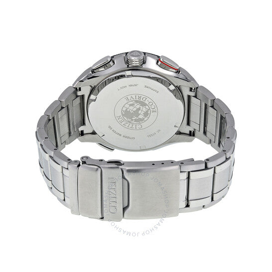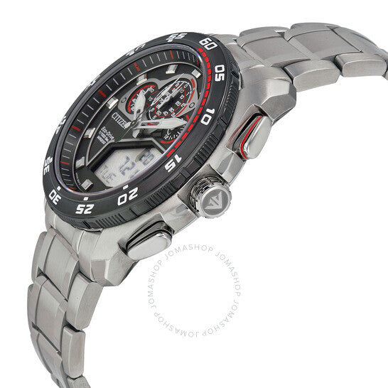 علبة من الفولاذ المقاوم للصدأ مع سوار من الفولاذ المقاوم للصدأ. إطار دوار أحادي الاتجاه. ميناء أسود بعقارب فضية اللون وعلامات ساعات. علامات دقائق حول الحافة الخارجية. نوع الميناء: تناظري-رقمي. ثلاث ثوانٍ - 60 ثانية، 24 ساعة، و1/10 من الثانية. آلية حركة إيكو درايف. زجاج ياقوتي مقاوم للخدش. تاج لولبي. غطاء خلفي صلب. قطر العلبة: 44 مم. شكلها دائري. قابلة للطي بمشبك أمان. مقاومة للماء حتى عمق 200 متر / 660 قدم. الوظائف: تقويم دائم، كرونوغراف، تاريخ، ساعات، دقائق، ثوانٍ، منبه، شاشة رقمية. معلومات إضافية: إضاءة خلفية LED. طراز الساعة الرياضية. علامة الساعة: Japan Movt. إصدارات المنتج: JW0111 55E، JW0111.55E، JW011155E. ساعة سيتيزن بروماستر للرجال بمينا أسود JW0111-55E.