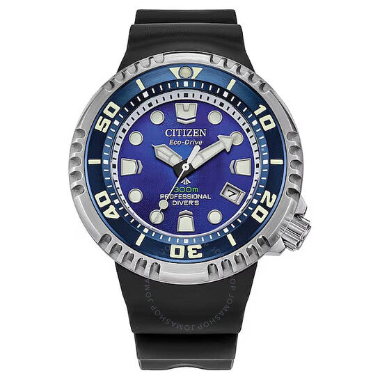علبة فضية اللون من الفولاذ المقاوم للصدأ مع سوار أسود من البولي يوريثان. إطار فضي اللون من الفولاذ المقاوم للصدأ. ميناء أزرق مع عقارب فضية اللون وعلامات ساعات منقطة. علامات دقائق حول الحافة الخارجية. نافذة عرض التاريخ عند موضع الساعة الرابعة. حركة سيتيزن كاليبر E365 إيكو-درايف. زجاج ياقوت مقاوم للخدش. تاج لولبي. غطاء خلفي صلب. هيكل دائري الشكل، مقاسه 46 مم. مشبك بإبزيم. مقاومة للماء حتى عمق 300 متر. الوظائف: التاريخ، الساعة، الدقائق، الثواني. سلسلة بروماستر دايف. طراز ساعة الغوص. علامة الساعة: Japan Movt. ساعة سيتيزن بروماستر دايف زرقاء للرجال BN1025-08L.
