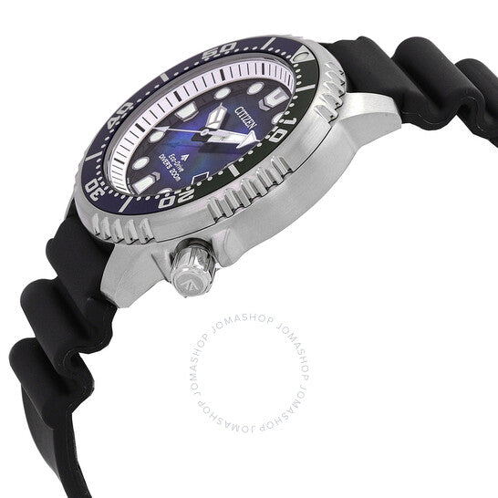 علبة فضية اللون من الفولاذ المقاوم للصدأ مع سوار أسود من البولي يوريثان. إطار دوار أحادي الاتجاه من الفولاذ المقاوم للصدأ فضي اللون. ميناء أزرق مع عقارب وعلامات ساعات فضية اللون. علامات دقائق حول الحافة الخارجية. نوع الميناء: تناظري. عقارب وعلامات مضيئة. عرض التاريخ عند موضع الساعة الرابعة. حركة سيتيزن كاليبر إيكو-درايف E168 إيكو-درايف. زجاج معدني مقاوم للخدش. تاج لولبي. غطاء خلفي صلب. شكل دائري، مقاس العلبة: 44 مم. عرض السوار: 20 مم. مشبك بإبزيم. مقاومة للماء حتى عمق 200 متر / 660 قدم. الوظائف: التاريخ، الساعة، الدقائق، الثواني، تعمل بالطاقة الشمسية. سلسلة بروماستر دايف. طراز ساعة الغوص. ملصق الساعة: Japan Movt. ساعة سيتيزن بروماستر دايف إيكو-درايف للرجال بمينا أزرق BN0166-01L.