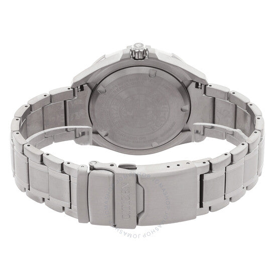 علبة وسوار من التيتانيوم فضي اللون. إطار أسود. ميناء أسود مع عقارب وعلامات ساعات فضية اللون. علامات دقائق حول الحافة الخارجية. نوع الميناء: تناظري. عقارب وعلامات مضيئة. عرض التاريخ عند موضع الساعة 3. حركة Citizen Caliber E168 eco-drive. زجاج معدني مقاوم للخدش. تاج لولبي. غطاء خلفي صلب. شكل دائري، مقاس العلبة: 44 مم. مشبك قابل للطي. مقاومة للماء حتى عمق 200 متر / 660 قدم. الوظائف: التاريخ، الساعة، الدقائق، الثواني. سلسلة Promaster. ساعة Citizen Promaster للرجال بمينا أسود BN0200-81E.