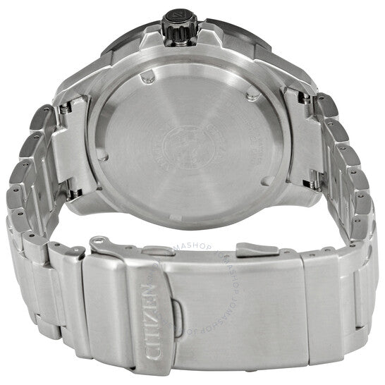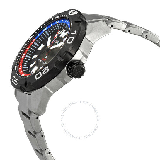 علبة من الفولاذ المقاوم للصدأ مع سوار من الفولاذ المقاوم للصدأ. إطار دوار أحادي الاتجاه أسود مطلي بالأيونات. ميناء أسود (أحمر وأزرق) بعقارب ومؤشرات ساعات فضية مضيئة. مؤشرات ٢٤ ساعة. مؤشرات دقائق حول الحافة الخارجية. نوع الميناء: تناظري. عقارب ومؤشرات مضيئة. عرض التاريخ عند موضع الساعة الثالثة. حركة Citizen عيار B877 eco-drive. زجاج ياقوت مقاوم للخدش. تاج لولبي. غطاء خلفي صلب. شكل دائري. حجم العلبة: ٤٤ مم. سمكها: ١٣.٩ مم. عرض السوار: ٢٢ مم. مشبك قابل للطي. مقاومة للماء حتى عمق ٢٠٠ متر / ٦٦٠ قدمًا. الوظائف: توقيت غرينتش، منطقة زمنية ثانية، ساعات، دقائق، ثوانٍ، تاريخ. سلسلة Promaster. تصميم كاجوال. ساعة Citizen Promaster GMT للرجال بمينا أسود BJ7128-59E.