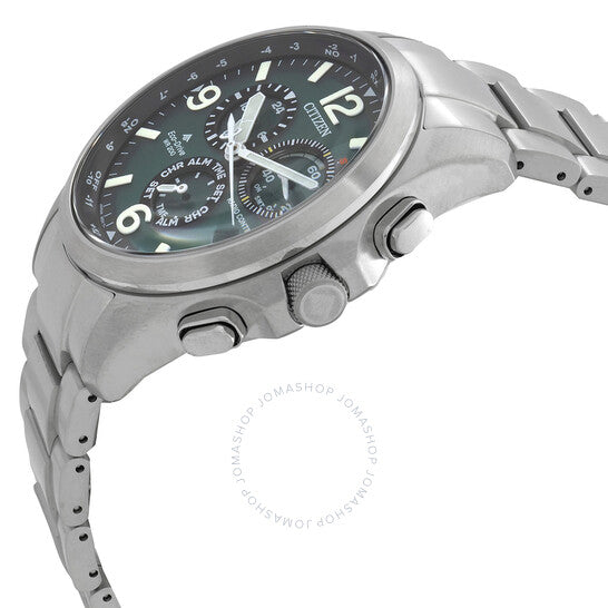 علبة وسوار من الفولاذ المقاوم للصدأ فضي اللون. إطار ثابت من الفولاذ المقاوم للصدأ فضي اللون. ميناء أخضر بعقارب فضية اللون وعلامات ساعات بأرقام عربية. علامات دقائق حول الحافة الخارجية. نوع الميناء: تناظري. عقارب وعلامات مضيئة. عرض التاريخ عند موضع الساعة الرابعة. ثلاثة موانئ فرعية تعرض: ٢٤ ساعة، اليوم/٦٠ ثانية/مؤشر احتياطي الطاقة، والوضع. حركة Citizen Caliber E660 eco-drive. كريستال ياقوتي مقاوم للخدش. غطاء خلفي صلب. شكل العلبة دائري، مقاسها: ٤٣ مم. عرض السوار: ٢٢ مم. مشبك قابل للطي مع مفتاح أمان. مقاومة للماء حتى عمق ٢٠٠ متر / ٦٦٠ قدمًا. الوظائف: تقويم دائم، ضبط الوقت الذري، تحكم لاسلكي، كرونوغراف، توقيت عالمي، منبه، تاريخ، يوم، ساعة، دقيقة، ثانية، مؤشر احتياطي الطاقة، تعمل بالطاقة الشمسية. سلسلة Promaster Land. طراز ساعة رياضية. ملصق الساعة: Japan Movt. ساعة سيتيزن بروماستر لاند كرونوغراف بمينا خضراء للرجال CB5921-59X.