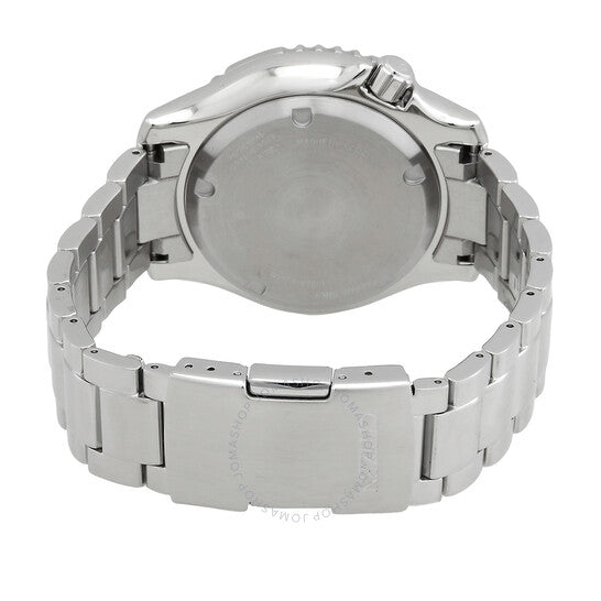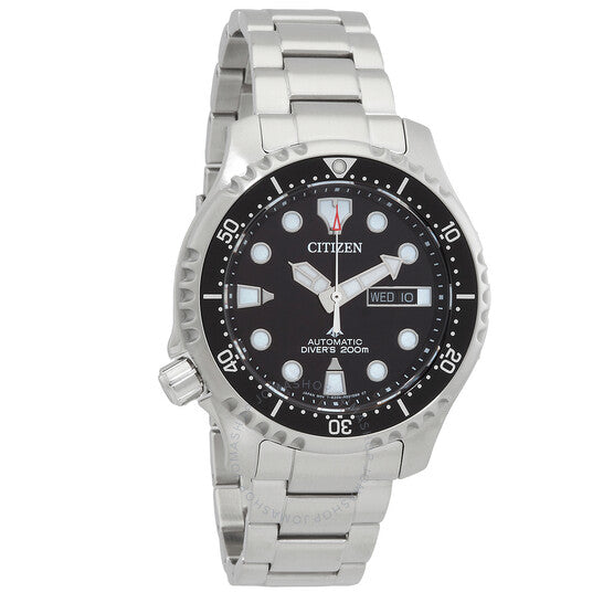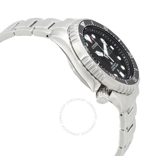 علبة وسوار من الفولاذ المقاوم للصدأ فضي اللون. إطار دوار أحادي الاتجاه من الفولاذ المقاوم للصدأ أسود اللون. ميناء أسود بعقارب فضية اللون وعلامات ساعات منقطة. علامات دقائق حول الحافة الخارجية. نوع الميناء: تناظري. عقارب وعلامات مضيئة. نافذة عرض التاريخ عند موضع الساعة 3. العيار: حركة أوتوماتيكية 8204. زجاج ياقوت مقاوم للخدش. تاج لولبي. غطاء خلفي صلب. شكل دائري، مقاس العلبة: 44 مم، سمكها: 13 مم. مشبك قابل للطي. مقاومة للماء حتى عمق 200 متر / 660 قدم. الوظائف: التاريخ، اليوم، الساعة، الدقيقة، الثانية. سلسلة بروماستر مارين. طراز ساعة الغوص. علامة الساعة: Japan Movt. ساعة سيتيزن بروماستر مارين أوتوماتيكية للرجال بمينا أسود، NY0140-80E.