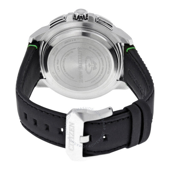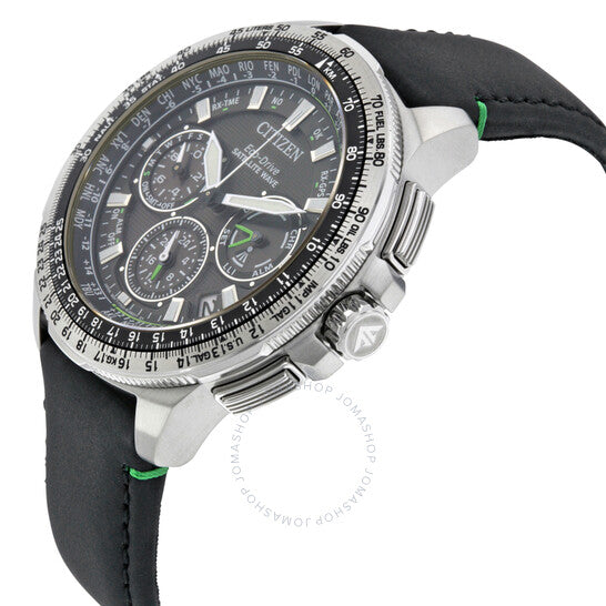 علبة من الفولاذ المقاوم للصدأ مع سوار جلدي أسود. إطار دوار أحادي الاتجاه. ميناء أسود بعقارب فضية اللون وعلامات ساعات. نوع الميناء: تناظري. عقارب وعلامات مضيئة. عرض التاريخ بين موضعي الساعة الرابعة والخامسة. ثلاثة أقراص فرعية تعرض: جزء من عشرين من الثانية، و24 ساعة، ومنبه. آلية حركة إيكو درايف F900 إيكو درايف. زجاج ياقوتي مقاوم للخدش. تاج لولبي. حجم العلبة: 47 مم. سُمكها: 15 مم. شكلها دائري. عرض السوار: 22 مم. مشبك تانغ. مقاومة للماء حتى عمق 200 متر / 660 قدمًا. الوظائف: التاريخ، الساعات، الدقائق، الثواني، نظام تحديد المواقع العالمي (GPS) عبر الأقمار الصناعية، منبه، تقويم دائم، وكرونوغراف. معلومات إضافية: تتميز بـ 40 منطقة زمنية، واحتياطي طاقة. طراز ساعة رياضية. ساعة سيتيزن بروماستر نافيهوك كرونوغراف رجالية بمينا سوداء CC9030-00E.