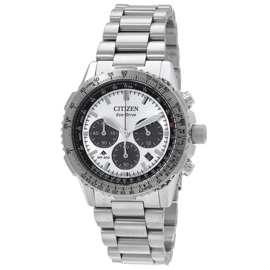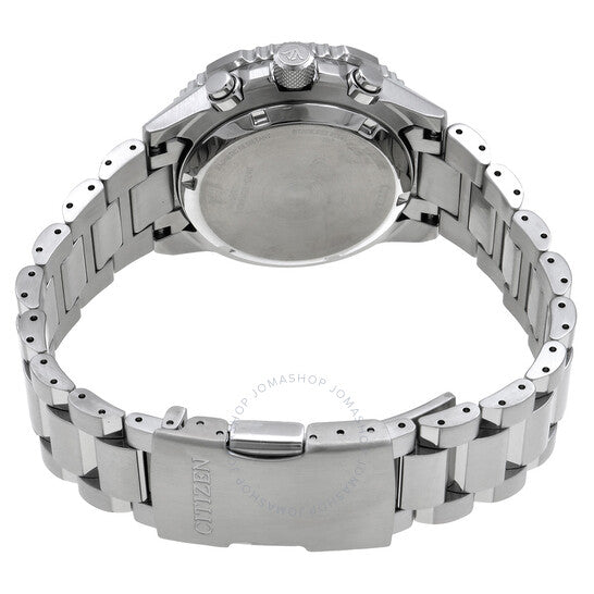 علبة وسوار من الفولاذ المقاوم للصدأ فضي اللون. إطار من الفولاذ المقاوم للصدأ فضي اللون. ميناء فضي اللون مع عقارب وعلامات ساعات فضية اللون. علامات دقائق حول الحافة الخارجية. نوع الميناء: تناظري. عقارب وعلامات مضيئة. عرض التاريخ بين الساعة 4 و5. كرونوغراف - ثلاثة أقراص فرعية تعرض: 60 ثانية، 60 دقيقة، و24 ساعة. آلية حركة سيتيزن كاليبر إيكو-درايف B620 إيكو-درايف. زجاج ياقوت مقاوم للخدش. تاج لولبي. غطاء خلفي صلب. هيكل دائري الشكل، مقاسه 40 مم. مشبك قابل للطي مع مفتاح أمان. مقاومة للماء حتى عمق 200 متر / 660 قدم. الوظائف: كرونوغراف، تاريخ، ساعة، دقيقة، ثانية، تعمل بالطاقة الشمسية. سلسلة بروماستر نافيهوك. طراز ساعة رياضية. ملصق الساعة: Japan Movt. ساعة سيتيزن بروماستر نافيهوك كرونوغراف للرجال بمينا فضي CA4660-61A.