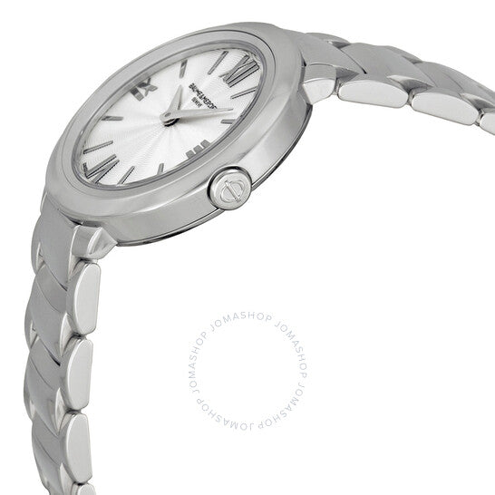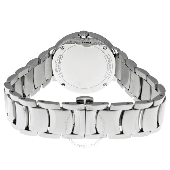 علبة من الفولاذ المقاوم للصدأ مع سوار من الفولاذ المقاوم للصدأ. إطار ثابت من الفولاذ المقاوم للصدأ. ميناء فضي اللون مع عقارب ومؤشرات ساعات فضية اللون. أرقام رومانية تُشير إلى مواقع الساعات 3 و6 و9 و12. نوع الميناء: تناظري. حركة كوارتز. زجاج ياقوت مقاوم للخدش. تاج قابل للسحب/الدفع. غطاء خلفي صلب. قطر العلبة: 30 مم. سُمكها: 7 مم. شكلها دائري. عرض السوار: 19 مم. مشبك قابل للطي. مقاومة للماء حتى عمق 30 مترًا / 100 قدم. طراز ساعة رسمية. إصدارات متنوعة: MOA10157، M0A10157، 10157. ساعة بوم إي ميرسييه بروميس النسائية بمينا فضي وفولاذ مقاوم للصدأ، إصدار 10157. إصدارات متنوعة: MOA10157، M0A10157، 10157
