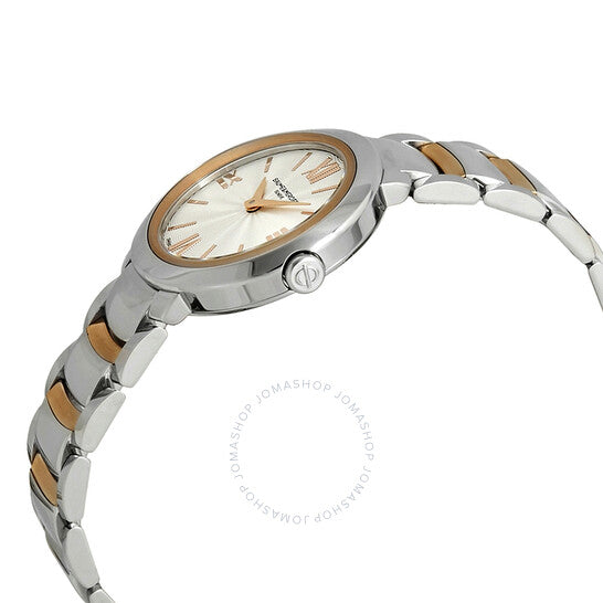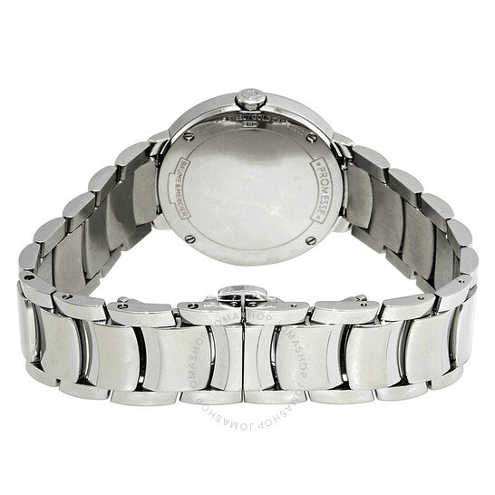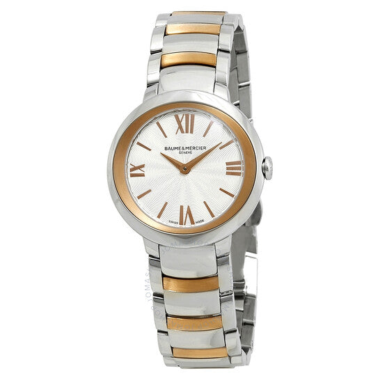 علبة من الفولاذ المقاوم للصدأ مع سوار من الفولاذ المقاوم للصدأ ثنائي اللون (فضي وذهبي وردي). إطار ثابت ثنائي اللون (فضي وذهبي وردي). ميناء فضي مزخرف بنقشة غيوشيه مع عقارب ومؤشرات ساعات ذهبية وردية. أرقام رومانية تُشير إلى مواقع الساعات 3 و6 و9 و12. نوع الميناء: تناظري. حركة كوارتز. زجاج ياقوت مقاوم للخدش. تاج قابل للسحب/الدفع. غطاء خلفي صلب. قطر العلبة: 30 مم. سُمكها: 7.4 مم. شكلها دائري. عرض السوار: 15 مم. مشبك ثلاثي الطي مع مفتاح أمان. مقاومة للماء حتى عمق 50 مترًا / 165 قدمًا. وظائفها: الساعات، الدقائق، الثواني. تصميم ساعة فاخرة. إصدارات المنتج: MOA10159، M0A10159، 10159. ساعة بوم إي ميرسييه بروميس 10159.