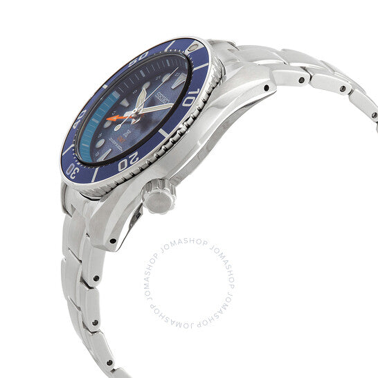علبة وسوار من الفولاذ المقاوم للصدأ فضي اللون. إطار دوار أحادي الاتجاه من الفولاذ المقاوم للصدأ أزرق اللون. ميناء أزرق مع عقارب وعلامات ساعات فضية اللون. علامات دقائق حول الحافة الخارجية. نوع الميناء: تناظري. عقارب وعلامات مضيئة. عرض التاريخ عند موضع الساعة 3. حركة سيكو كاليبر 5K65 إيكو-درايف. كريستال ياقوت مقاوم للخدش. تاج لولبي. غطاء خلفي صلب. شكل العلبة دائري، مقاسها: 45 مم، سمكها: 13.2 مم. عرض السوار: 20 مم. مشبك قابل للطي مع مفتاح أمان. مقاومة للماء حتى عمق 200 متر / 660 قدمًا. الوظائف: التاريخ، الساعة، الدقائق، الثواني. سلسلة بروسبكس. طراز ساعة الغوص. علامة الساعة: Japan Movt. ساعة سيكو بروسبكس زرقاء للرجال SFK001J1.