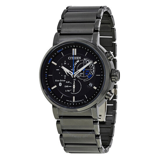 علبة وسوار من الفولاذ المقاوم للصدأ مطليان بالأيونات السوداء. إطار ثابت مطلي بالأيونات السوداء. ميناء أسود مع عقارب مضيئة فضية اللون وعلامات ساعات. علامات دقائق حول الحافة الخارجية. نوع الميناء: تناظري. عقارب مضيئة. نافذة عرض التاريخ عند موضع الساعة الرابعة. نافذة عرض أيام الأسبوع. ثلاث ساعات - ٢٤ ساعة، وقت مزدوج ومنبه. آلية حركة سيتيزن كاليبر إيكو-درايف W770 إيكو درايف مع احتياطي طاقة يصل إلى ٢٠.٥ شهر. زجاج معدني مقاوم للخدش. تاج قابل للسحب/الدفع. غطاء خلفي صلب. حجم العلبة: ٤٦ مم. سمكها: ١٥ مم. شكلها دائري. عرض السوار: ٢٥ مم. طول السوار: ٨ بوصات. مشبك قابل للطي بزر ضغط. مقاومة للماء حتى عمق ١٠٠ متر / ٣٣٠ قدمًا. الوظائف: كرونوغراف، تاريخ، يوم، ساعة، دقيقة، ثانية، منبه، بلوتوث، تقويم دائم، مؤشر احتياطي الطاقة. معلومات إضافية: متوافقة مع نظامي iOS وأندرويد، مع خاصية البحث عن الهاتف وتصفيته، وتنبيهات بصرية/اهتزازية. تصميم ساعة رياضية. اسم العلامة التجارية: Japan Movt. ساعة سيتيزن الذكية للرجال BZ1005-51E، مزودة بتقويم دائم وكرونوغراف وقرب.