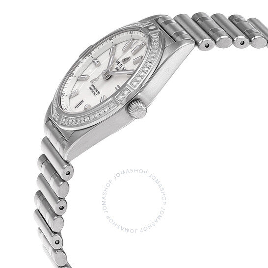 علبة من الفولاذ المقاوم للصدأ مع سوار من الفولاذ المقاوم للصدأ. إطار دوار أحادي الاتجاه من الفولاذ المقاوم للصدأ مرصع بالألماس. ميناء أبيض بعقارب فضية مضيئة وعلامات ساعات مرصعة بالألماس. علامات دقائق بأرقام عربية (بفاصل 5 دقائق). علامات دقائق حول الحافة الخارجية. نوع الميناء: تناظري. عقارب وعلامات مضيئة. عرض التاريخ عند موضع الساعة 6. حركة كوارتز بريتلينغ كاليبر 77. زجاج ياقوت مقاوم للخدش. تاج قابل للسحب/الدفع. غطاء خلفي صلب. شكل دائري. حجم العلبة: 32 مم. سمك العلبة: 8.5 مم. عرض السوار: 16 مم. مشبك قابل للطي. مقاومة للماء حتى عمق 100 متر / 330 قدمًا. الوظائف: التاريخ، الساعة، الدقيقة، الثانية، الكرونومتر. سلسلة كرونومات. طراز ساعة رسمية. علامة الساعة: صناعة سويسرية. ساعة بريتلينغ كوارتز كرونومات نسائية بمينا بيضاء مرصعة بالألماس A77310591A1A1.