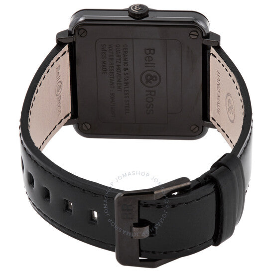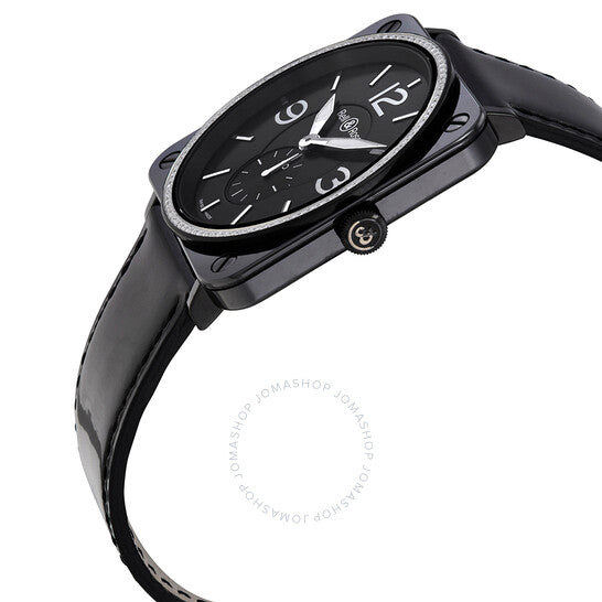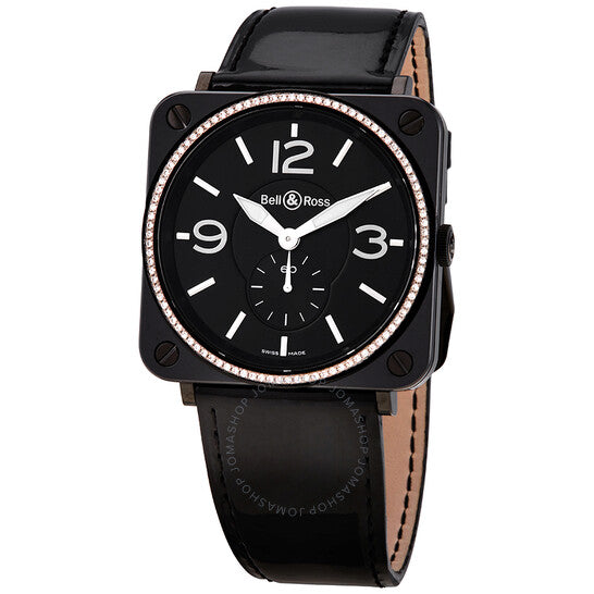 علبة من السيراميك الأسود مع سوار جلدي أسود. إطار ثابت من السيراميك الأسود مرصع بالألماس. ميناء أسود بعقارب فضية مضيئة ومؤشرات ساعات. أرقام عربية تُشير إلى الساعات 3 و9 و12. نوع الميناء: تناظري. عقارب مضيئة. ميناء فرعي واحد يعرض: ثواني صغيرة. آلية حركة كوارتز. زجاج ياقوتي مقاوم للخدش. غطاء خلفي صلب. شكل العلبة مربع، مقاسها: 36 مم، سمكها: 7 مم. عرض السوار: 24 مم. مشبك تانغ. مقاومة للماء حتى عمق 50 مترًا / 165 قدمًا. الوظائف: ساعات، دقائق، ثوانٍ صغيرة. سلسلة سيراميك. طراز ساعة رسمية. علامة الساعة: صناعة سويسرية. بيل آند روس كوارتز مرصع بالألماس، ميناء أسود BRS98-BCS-00764.