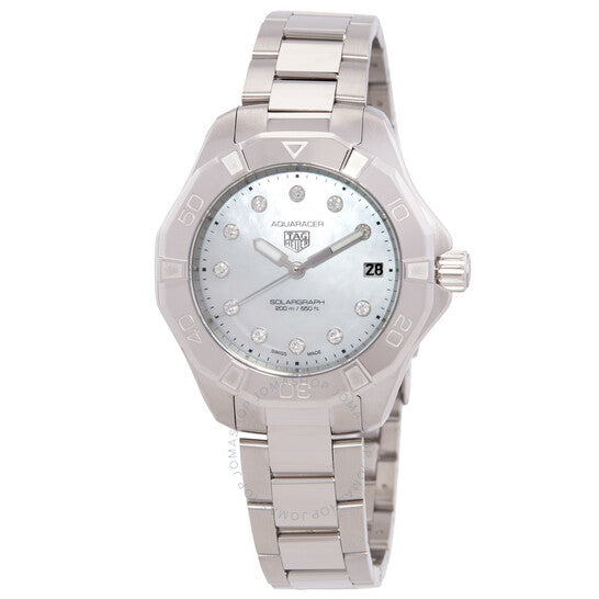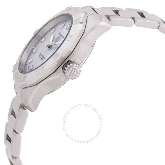 علبة وسوار من الفولاذ المقاوم للصدأ فضي اللون. إطار دوار أحادي الاتجاه من الفولاذ المقاوم للصدأ فضي اللون. ميناء من عرق اللؤلؤ مع عقارب سوداء وعلامات ساعات من الماس. علامات دقائق حول الحافة الخارجية. نوع الميناء: تناظري. عقارب وعلامات مضيئة. عرض التاريخ عند موضع الساعة 3. آلية حركة كوارتز. زجاج ياقوت مقاوم للخدش. تاج لولبي. غطاء خلفي صلب. شكل العلبة دائري، مقاسها: 34 مم. مشبك قابل للطي مع مفتاح أمان. مقاومة للماء حتى عمق 200 متر / 660 قدمًا. الوظائف: التاريخ، الساعة، الدقائق، الثواني. طراز ساعة رسمية. علامة الساعة: صناعة سويسرية. ساعة تاغ هوير كوارتز نسائية مرصعة بالألماس WBP1313.BA0005.